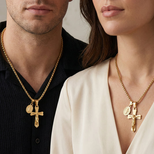 Колие с разпятието на Исус Христос и медальон на Света Богородица